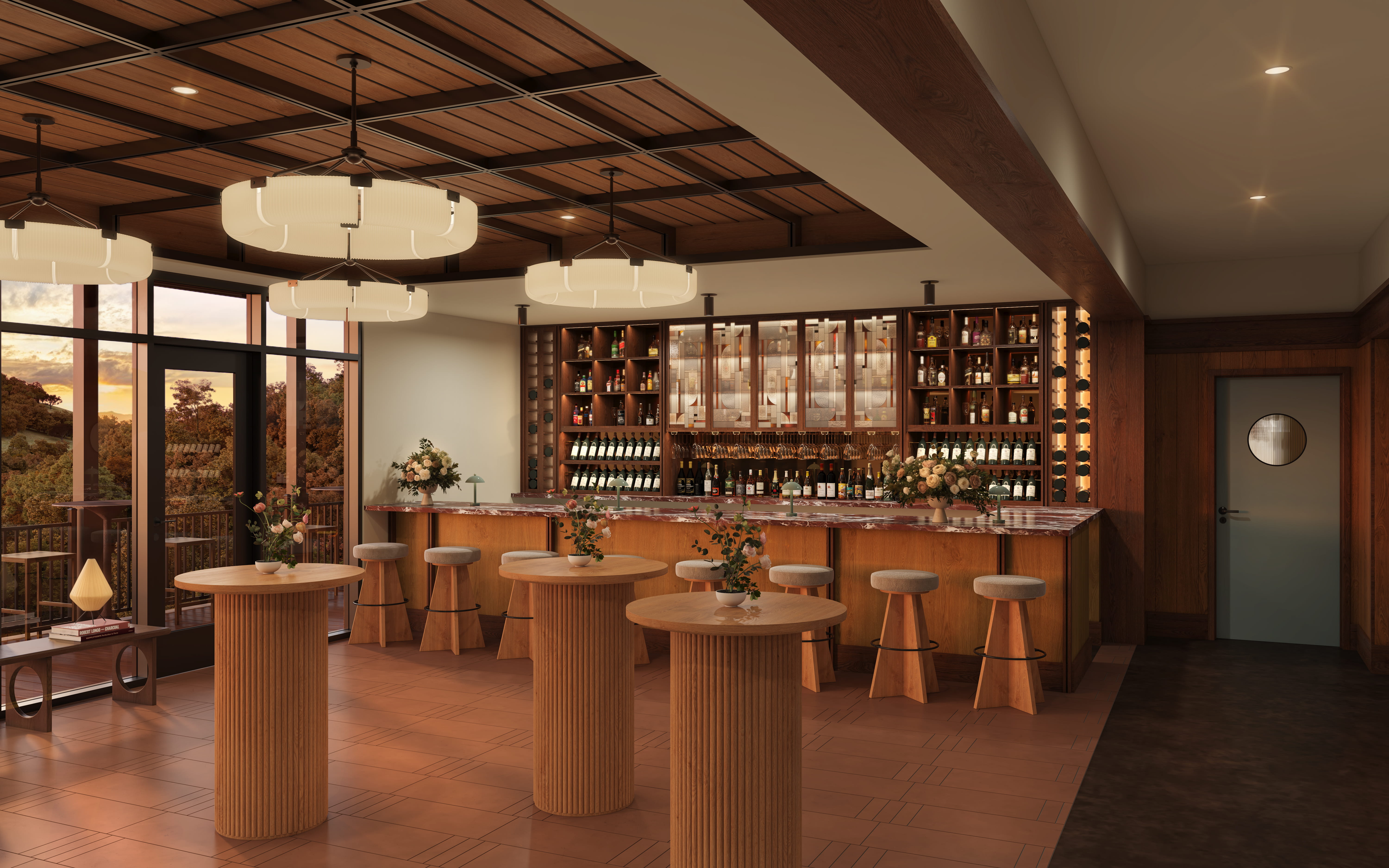 Six beautifully designed two-bedroom cabins sit tucked among the trees across our seventeen-acre property, giving your closest friends and family a private place to stay right on site. Floor-to-ceiling windows, modern interiors, and private outdoor decks bring the Smokies into every moment.